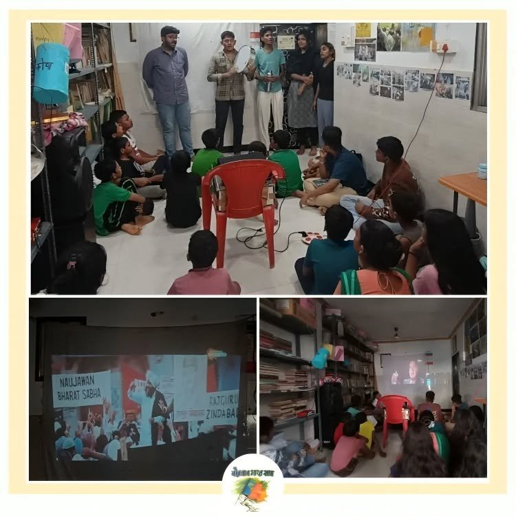 7 जुलै रोजी, नौभासतर्फे साठे नगरमधील शहीद सुखदेव फिरत्या वाचनालयाचे नियमित वाचक आणि शहीद राजगुरु शिक्षण सहाय्यता केंद्रात शिकायला येणाऱ्या विद्यार्थ्यांसाठी “द लेजेंड ऑफ भगतसिंह” चित्रपटाचे स्क्रीनिंग आयोजित करण्यात आले होते. भगतसिंह आणि त्यांच्या साथीदारांच्या जीवनावर आणि संघर्षावर आधारित हा चित्रपट नौभासतर्फे वेगवेगळ्या ठिकाणी नियमितपणे दाखवला जातो कारण हा चित्रपट आपल्या क्रांतिकारकांच्या विचारांचा प्रसार करण्यासाठी एक माध्यम म्हणून काम करतो. जेव्हा प्रतिगामी शक्ती त्यांच्या द्वेषाच्या राजकारणाचे बीज विद्यार्थी तरुणांमध्ये पेरण्याचा सर्वतोपरी प्रयत्न करत आहेत तेव्हा जात, धर्म, वर्गाची भिंत मोडून एका समान आणि न्याय्य समाजासाठी संघर्ष कसा उभा करायचा हा विचार आणि शहीदांचा आदर्श जनसामान्यांमध्ये आणि विशेषतः मुलांमध्ये रुजविणे गरजेचे आहे. आपण पाहतोच की टेलिव्हिजन, चित्रपट, सोशल मीडिया इत्यादींच्या माध्यमातून जो द्वेष पसरवला जात आहे त्याचा आज मुलांच्या मनावर वाईट प्रभाव पडत आहे. अशात त्यांना आपल्या शहीदांची आणि त्यांच्या क्रांतीकारी विचारांची आठवण करून देणे अत्यंत आवश्यक आहे. चित्रपटाच्या स्क्रिनिंग नंतर मुलांनी चित्रपटातून शिकलेल्या गोष्टींबद्दल चर्चा केली – त्यांनी मांडले की अन्याय झाल्याचे पाहून सुद्धा गप्प बसणे चुकीचे आहे आणि जे काही शिकवले जाते, सांगितले जाते आहे त्यावर प्रश्न विचारणे गरजेचे आहे. स्क्रीनिंगच्या शेवटी नौभासच्या सदस्यांनी क्रांतीकारी गीते सादर केली त्यात मुलांनीही त्यांना साथ दिली.