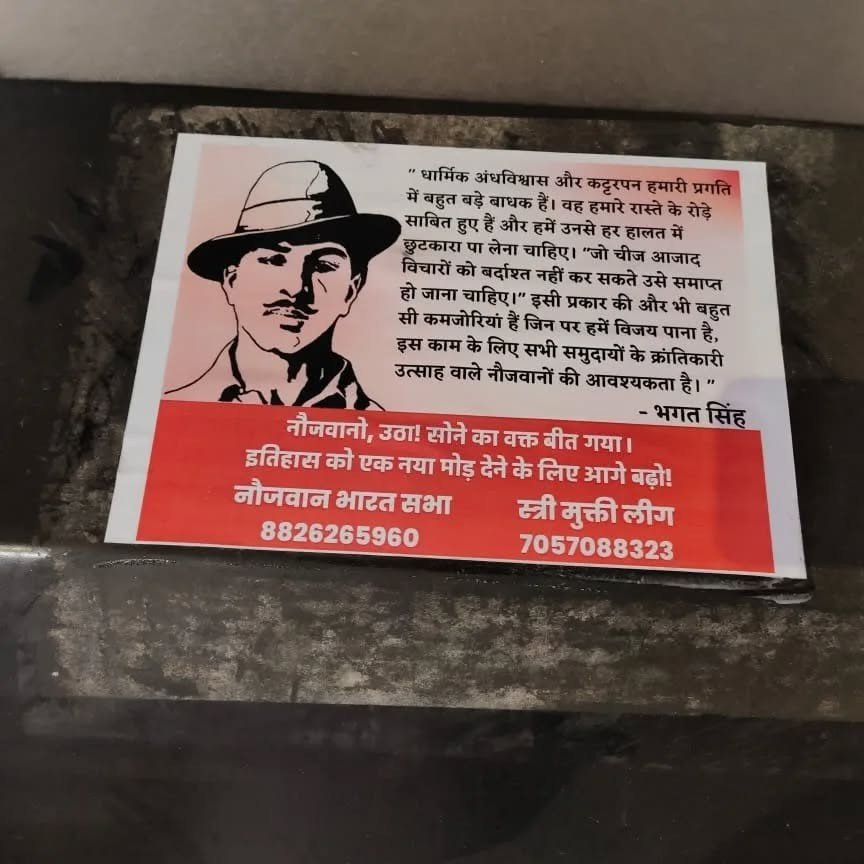 शहीद भगतसिंहांच्या 115 व्या जन्मदिवसानिमित्त ‘शहीद भगत सिंह स्मृति संकल्प अभियान’ च्या अंतर्गत ‘काफ़िला-ए-इंकलाब’ रॅलीसाठी साठे नगर, लल्लुभाई कंपाऊंडमध्ये पोस्टरींग करण्यात आले.