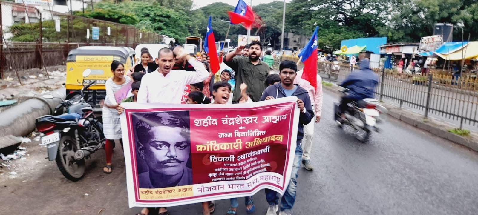 शहीद चंद्रशेखर आझाद यांच्या जन्मदिनानिमित्त (23 जुलै) नौजवान भारत सभेतर्फे अभिवादन कार्यक्रम करून पदयात्रा काढण्यात आली.