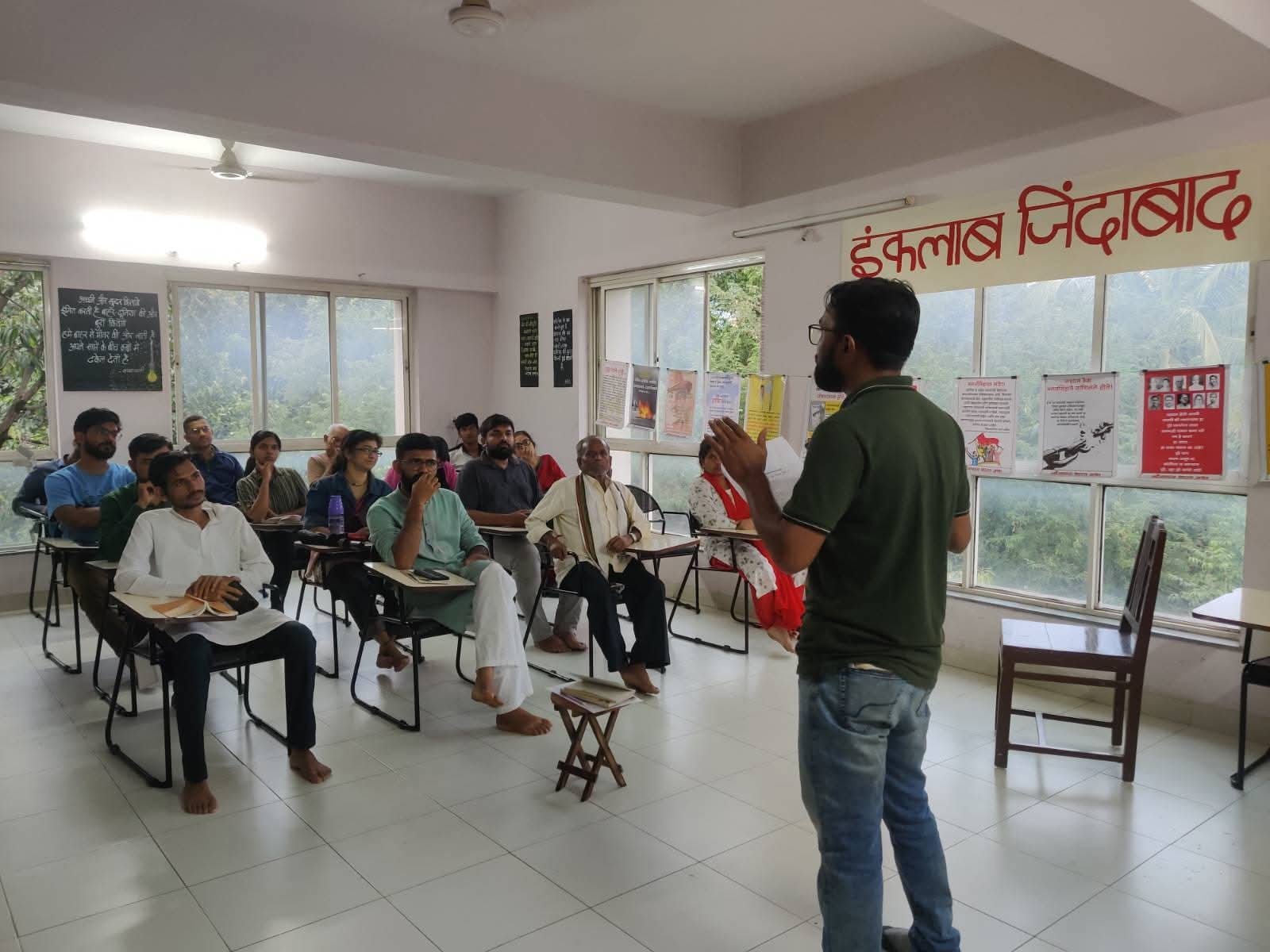 साथींनो नौजवान भारत सभेद्वारे 24 सप्टेंबर रोजी सांस्कृतिक संध्या आयोजित करण्यात आली होती. मोठ्या संख्येने पुणे शहरातील न्याय प्रिय तरुणांनी-नागरिकांनी कार्यक्रमामध्ये आपली उपस्थिती दर्शवली. कार्यक्रमाची सुरुवात नौजवान भारत सभेच्या सांस्कृतिक टीमने कवी यश मालवीय यांच्या ‘दबे पैरोसे उजाला आ रहा है’ या गीताने केली. या नंतर अदम गोंडवी यांच्या ‘काजू भुने पलेट में, विस्की गिलास में’ या कवितेचे वाचन साथी स्वप्नजा यांनी केले. ही कविता भांडवली राज्यसत्तेचे चरित्र उघडे पाडते आणि त्या विरुद्ध संघर्ष करण्यासाठी प्रेरणाही देते. साथी सुस्मित यांनी ‘संविधान’ या पाश यांच्या संविधानाच्या भांडवली चरित्रावर बोट ठेवणाऱ्या कवितेचे वाचन केले.