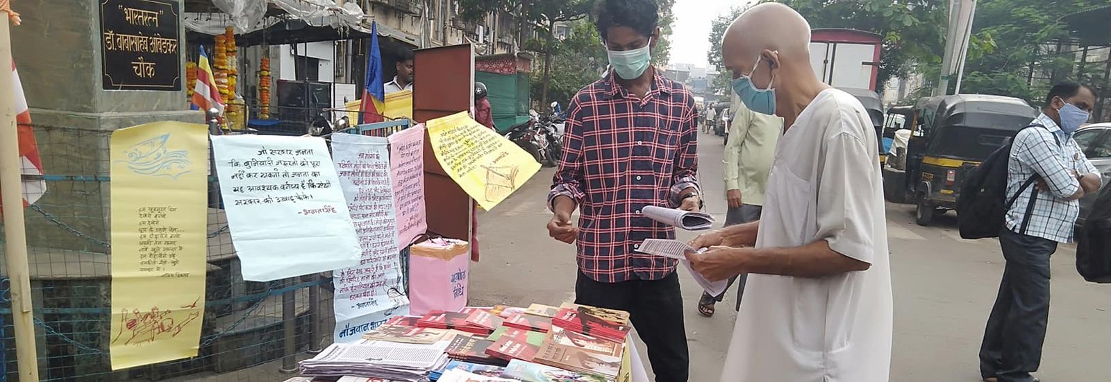 दि.२९/०९/२०२० रोजी सकाळी संविधान चौक, लल्लुभाई कंपाऊंड, मानखुर्द, (मुंबई) या ठिकाणी ‘शहीद स्मृती संकल्प अभियान’ अंतर्गत शहीद भगतसिंह व अन्य क्रांतिकारी साहित्याचे प्रदर्शन लावण्यात आले.