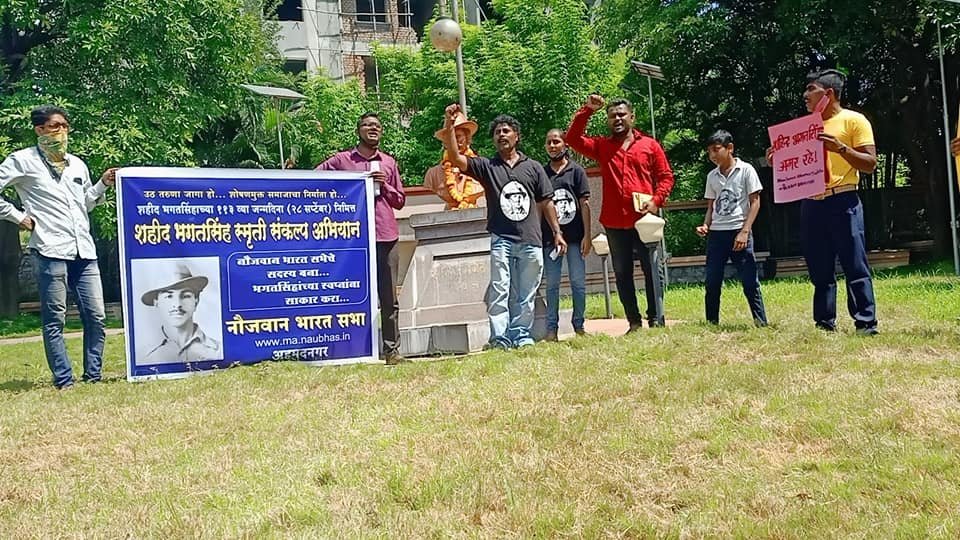अहमदनगर येथे नौजवान भारत सभेच्यावतीने २८ सप्टेंबर, शहीद भगतसिंह जन्मदिना निमित्त भगतसिंहाना अभिवादन करून शहीद भगतसिंह स्मृती संकल्प व नौजवान भारत सभा सदस्यता अभियानाला सुरुवात करण्यात आली