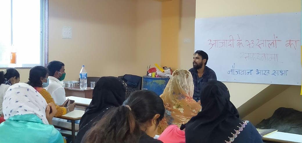 दि. 15/08/2020 रोजी मानखुर्द – गोवंडीमध्ये वरील विषयावर आयोजित केलेल्या परीचर्चेत महाविद्यालयीन तरुणांसोबतच कामगारांनीदेखील हिरीरीने सहभाग घेतला. क्रांतिकारी गीतांच्या प्रस्तुतीबरोबरच स्वातंत्र्याबद्दल अतिशय मार्मिक पणे बोलणाऱ्या कवितांचे वाचन केले गेले ज्यात सर्वेश्वर दयाल सक्सेना यांची ‘देश कागज पे बना नक्षा नहीं होता’, नागार्जुन यांची ‘किसकी है जनवरी, किसका होऊ अगस्त’ यांचा समावेश होता. त्यानंतर चर्चेला सुरवात करत अविनाश यांनी भारतीय स्वातंत्र्याच्या पार्श्वभूमीची मांडणी केली, ज्यात इंग्रजांनी कशाप्रकारे भारतात आगमन करून भारतीय राजकारणात हस्तक्षेप करत 1757 मध्ये प्लासी आणि 1758 मध्ये बक्सर येथील युद्ध जिंकून बंगालच्या नवाबला नाममात्र बनवत भारतावर आपले वर्चस्व स्थापित केले व त्यानंतर ‘ तोडा आणि फोडा ‘ चे राजकारण करून भारतीयांना कशाप्रकारे विभाजित केले, ह्यावर प्रकाश टाकण्यात आला. जेव्हा स्वातंत्र्यासाठी भारतीय जनतेचा दबाव वाढत होता तेव्हा सर ऍलन ह्यूम ह्या ब्रिटिश अधिकाऱ्याच्या मदतीने स्थापना केलेल्या काँग्रेस पक्षाला सोयिस्करपणे सत्ता हस्तांतरित करुन इंग्रजांनी भारतातून जाण्याच्या निर्णय घेतला, ह्या दरम्यान घडलेल्या राजकीय घडामोडींवर देखील चर्चा करण्यात आली.