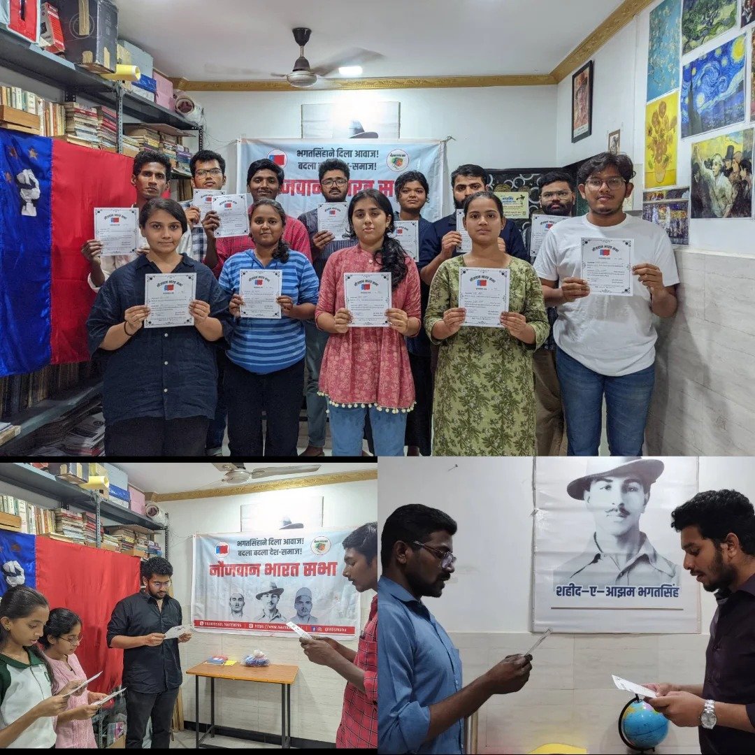 नौजवान भारत सभा द्वारा चलाए जा रहे देशव्यापी सदस्यता अभियान के तहत 23 दिसम्बर को नौभास की मुम्बई इकाई में नए साथियों को सदस्यता दी गयी। साथ ही पूर्व सदस्यों ने अपनी सदस्यता फिर से ली। नए साथियों ने, जो नौभास की गतिविधियों में शामिल होते रहे हैं, अपनी पहलकदमी और संकल्प को आगे बढ़ाते हुए नौभास की सदस्यता ली और क्रान्तिकारियों के विचारों को लोगों तक ले जाने और उनके सपनों के समाज को हकीकत में बदलने के लिए स्वयं को प्रतिबद्ध किया।