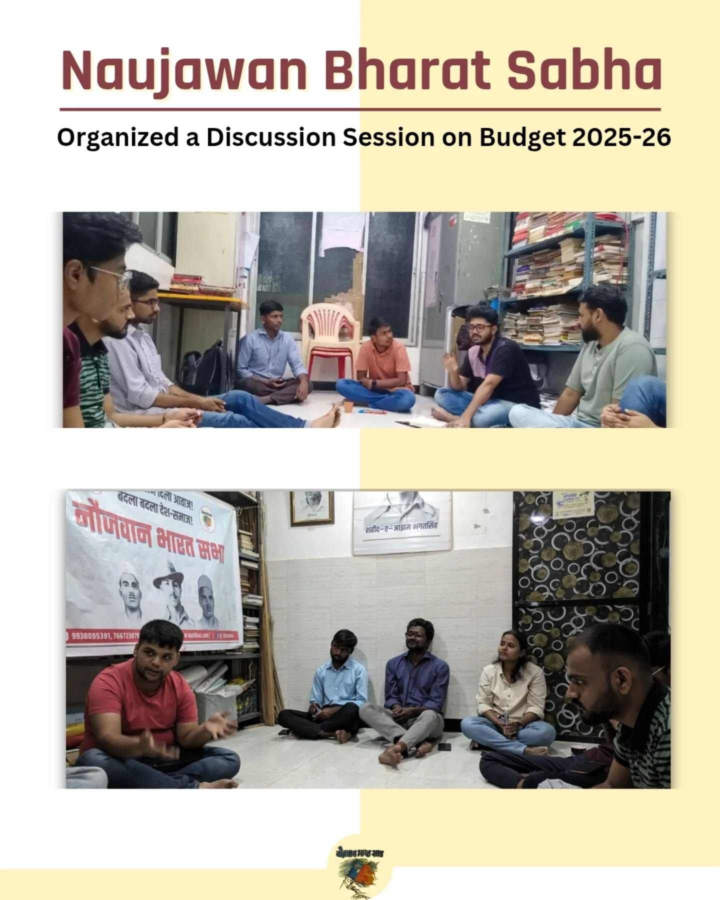 Recently, the Finance Minister presented the Budget in the Parliament. The presentation comes at a time when the country is facing serious economic stress. All figures—from employment generation to inflation—depict a very grim situation. While there were expectations from the Finance minister to acknowledge these pressing issues, Nirmala Sitharaman did what has become the norm for the Modi government: turning the budget declaration into yet another PR campaign. It is hence essential for the youth of the country to evaluate the details in such announcements, to understand what this government actually plans on doing. With this in mind, Naujawan Bharat Sabha organized a session on the Annual Budget 2025. After an overview of the budget cut and allocation to different schemes, a discussion was conducted. The very nature of the budget reveals the class character of the Fascist Modi Government. While corporates have been getting tax cuts and loan waivers, the issues of common citizens have been pushed aside. There is not a single mention of the word “employment” in the whole Budget, even as it became the most important issue in the General elections last year. Meanwhile, allocations for key schemes like MNREGA, as well as government spending on education and healthcare, continue to face sharp reductions. It was discussed that the present government, like its predecessors, serve the business class of the country and is dedicated to transferring the wealth from the working people to the top 1%. The discussion concluded with identifying key demands of the students and youth of this country including 1) a permanent employment guarantee scheme like BSNEGA( Bhagat Singh National Employment Guarantee Act) which would make employment a fundamental right 2) Progressive Tax on the richer sections and 3) Free and Equal education for all. Naujawan Bharat Sabha has been actively raising such demands on the ground and has been working on mobilizing the youth to create a mass movement to attain them.