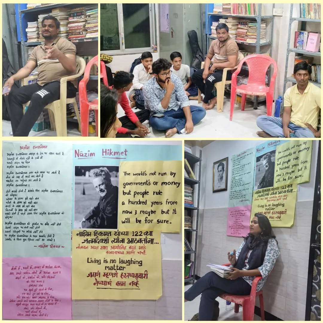 नौजवान भारत सभेतर्फे अनेक क्रांतिकारकांना त्यांच्या शब्दांनी प्रेरणा देणाऱ्या, आशेचे कवी (poet of hope) म्हणून ओळखल्या जाणाऱ्या प्रसिध्द टर्किश कवी नाझिम हिकमत यांच्या 122 व्या जन्मदिवशी त्यांना आठवत काव्यवाचन आणि चर्चा आयोजित केली होती