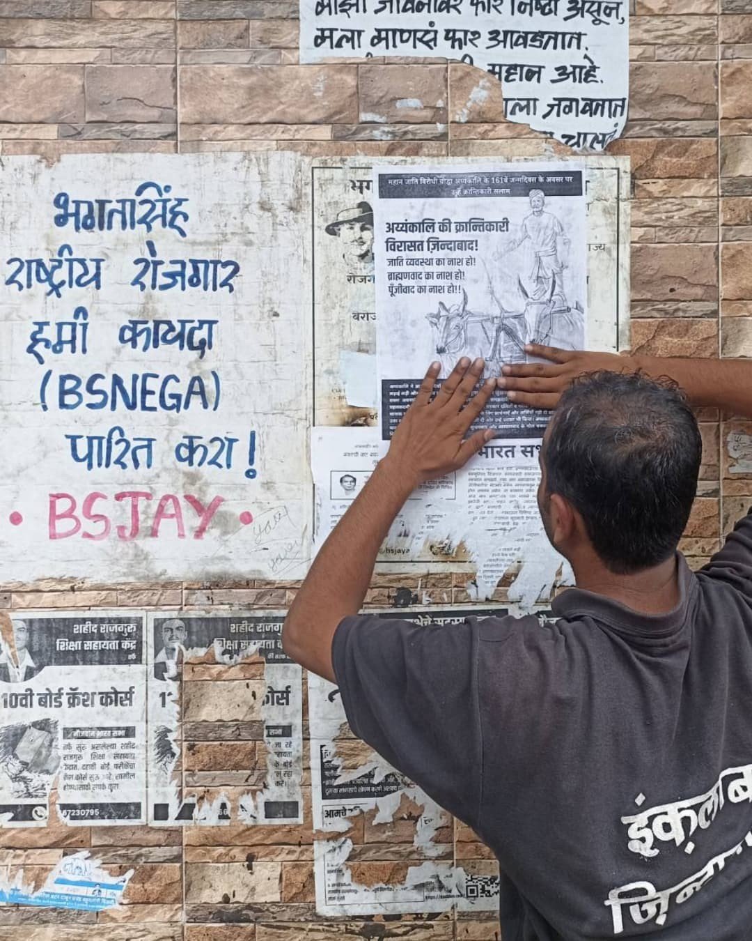 आज अय्यंकालींच्या जयंतीच्या निमित्ताने त्यांचा वैचारिक वारसा आणि जतिविरोधी संघर्ष कामगार कष्टिकरी जनतेत घेऊन जाण्याच्या हेतूने नौजवान भारत सभा तर्फे साठेनगर, मानखुर्द च्या कामगार वस्तीत पोस्टरींग केले गेले.