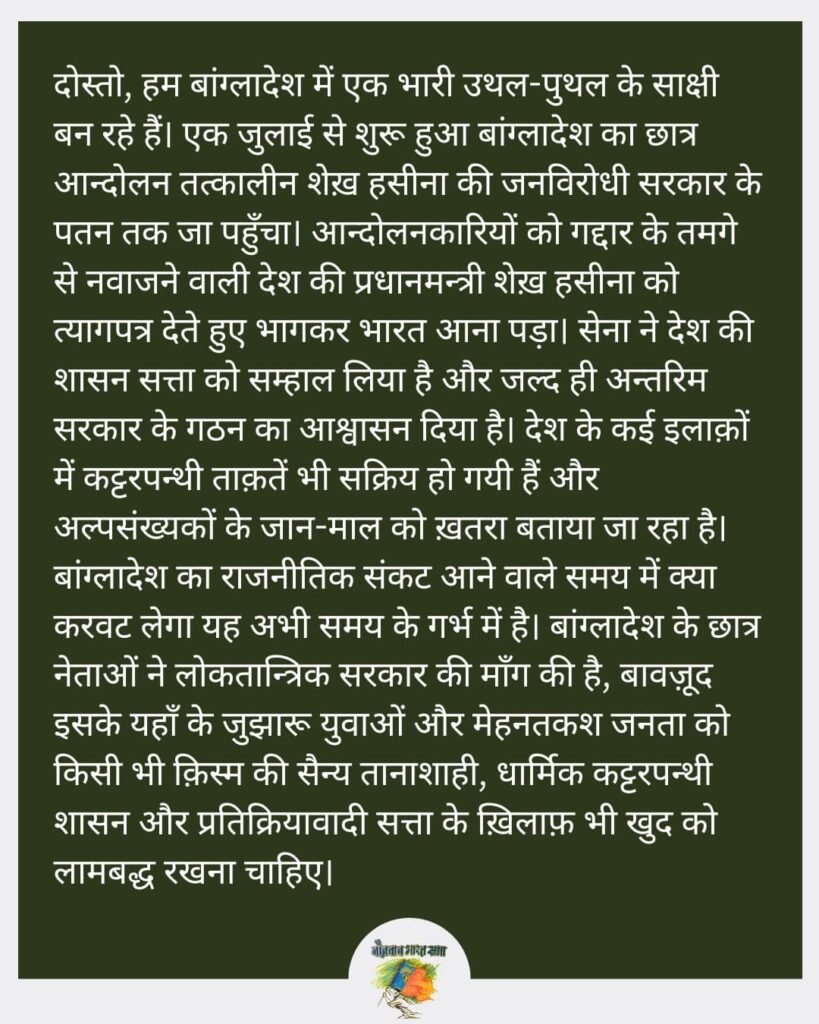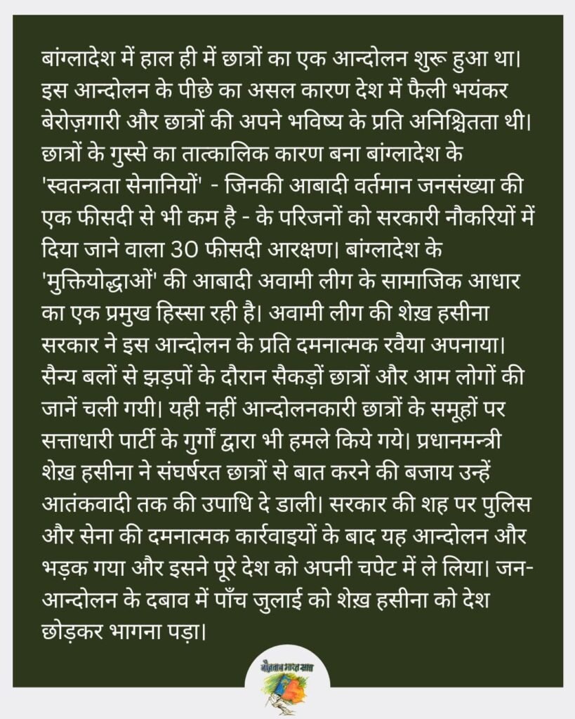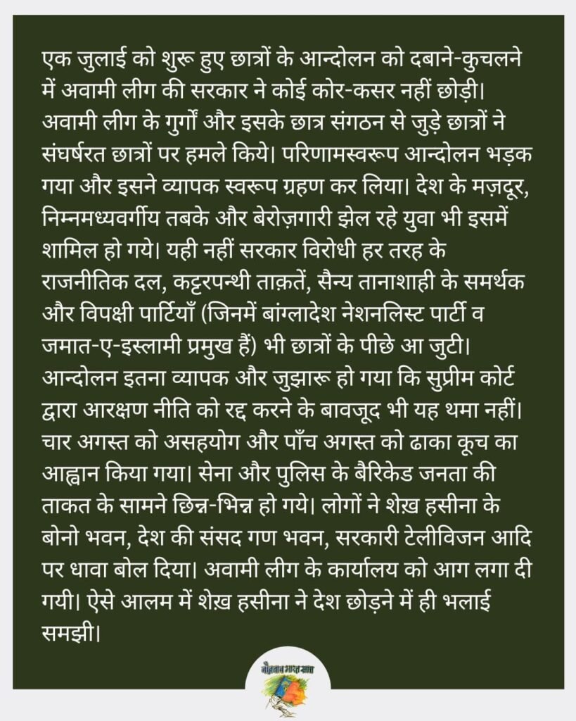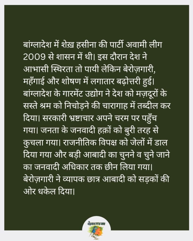 बांग्लादेश के छात्रों के जुझारू आन्दोलन ने व्यापक जनता को अपने साथ जोड़कर जनविरोधी शेख़ हसीना सरकार को उखाड़ फेंका !