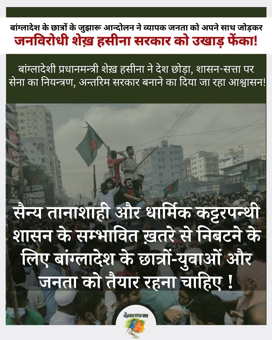 सैन्य तानाशाही और धार्मिक कट्टरपन्थी शासन के सम्भावित ख़तरे से निबटने के लिए बांग्लादेश के छात्रों-युवाओं और जनता को तैयार रहना चाहिए !