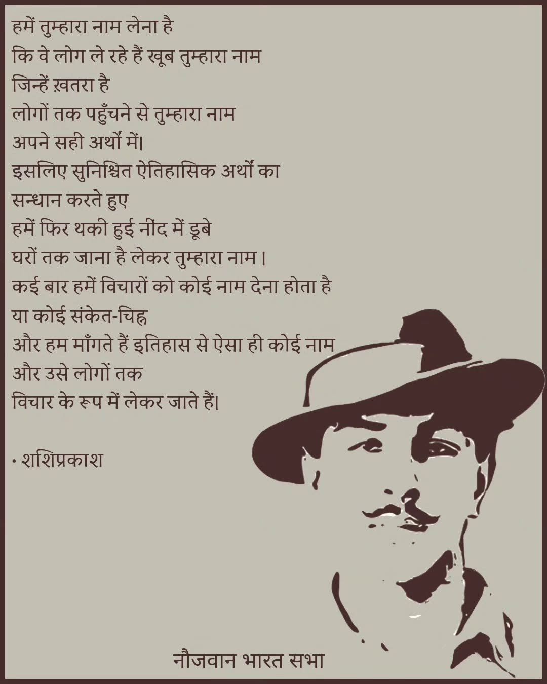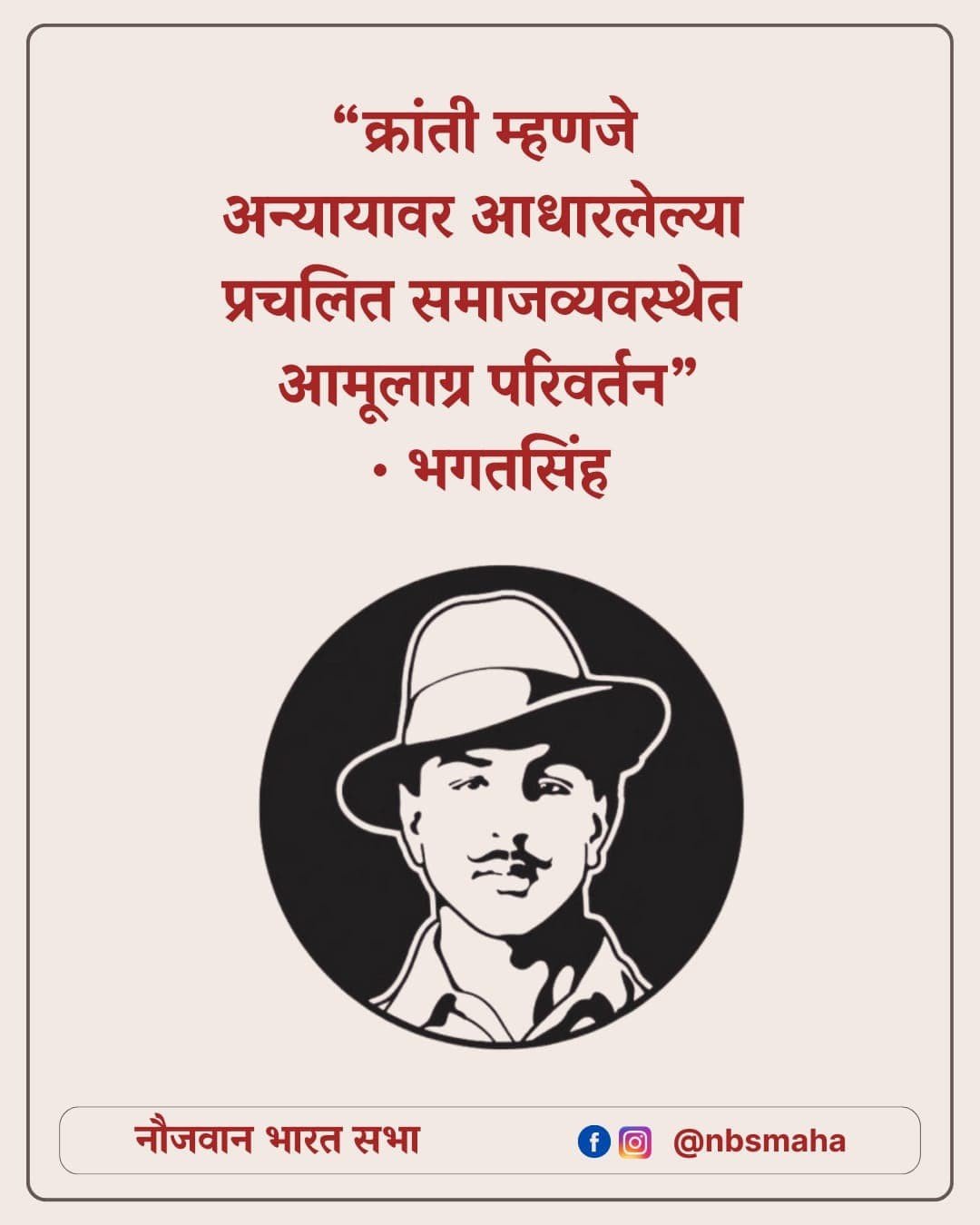 भगतसिंह यांच्या जन्मदिनानिमित्त सादर आहे शहीद भगतसिंह यांच्या काही महत्त्वाच्या उद्धरणांची पोस्टर शृंखला