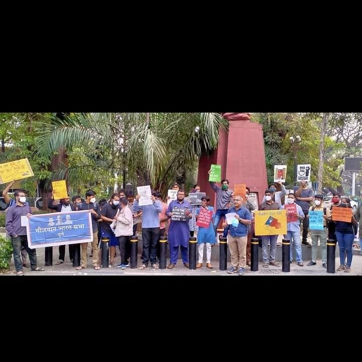आज दिनांक 17 फेब्रुवारी 2021, बुधवार, रोजी नौजवान भारत सभा (नौभास) आणि पुण्यातील इतर अनेक परिवर्तनशील संघटनांनी आणि सामान्य नागरिकांनी मिळून बालगंधर्व चौक, पुणे येथे सायंकाळी 6 वाजता, दिशा रवी तसेच इतर पर्यावरणवादी, मानवाधिकार कार्यकर्त्यांच्या दमनाविरोधात निदर्शने केली.
